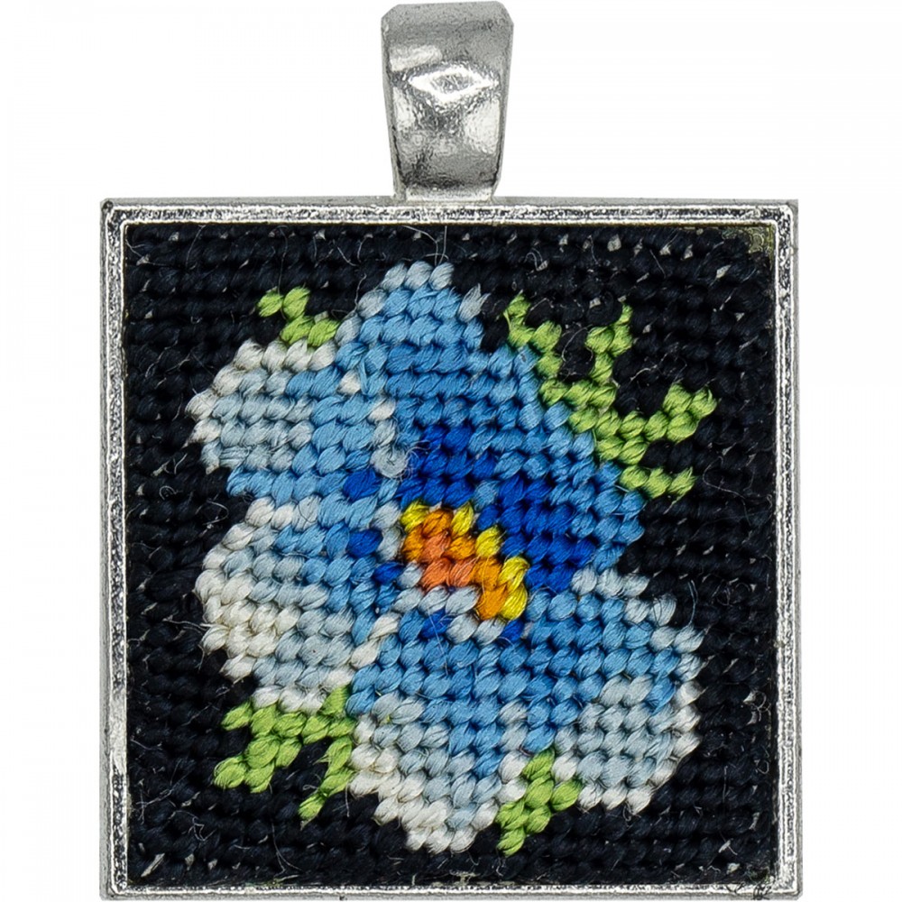 Pandantiv patrat handmade, goblen petunie visatoare