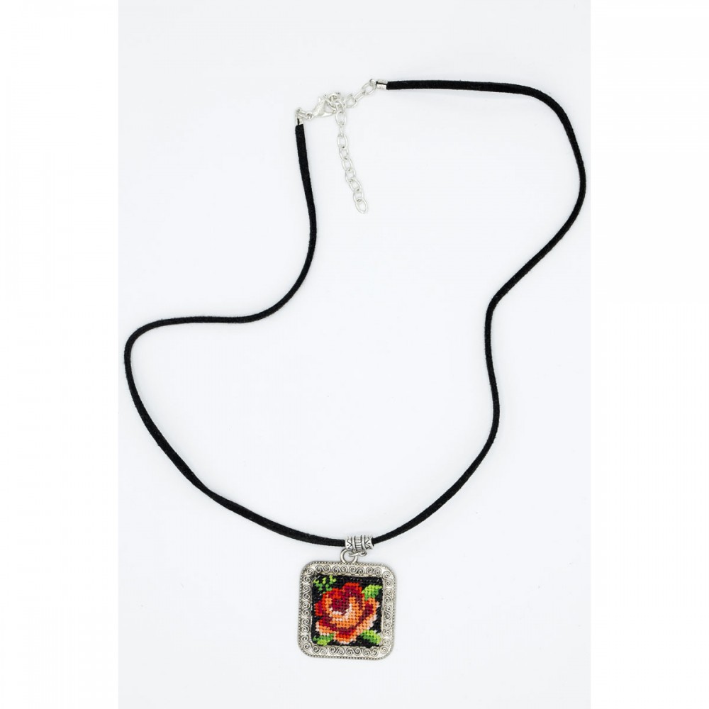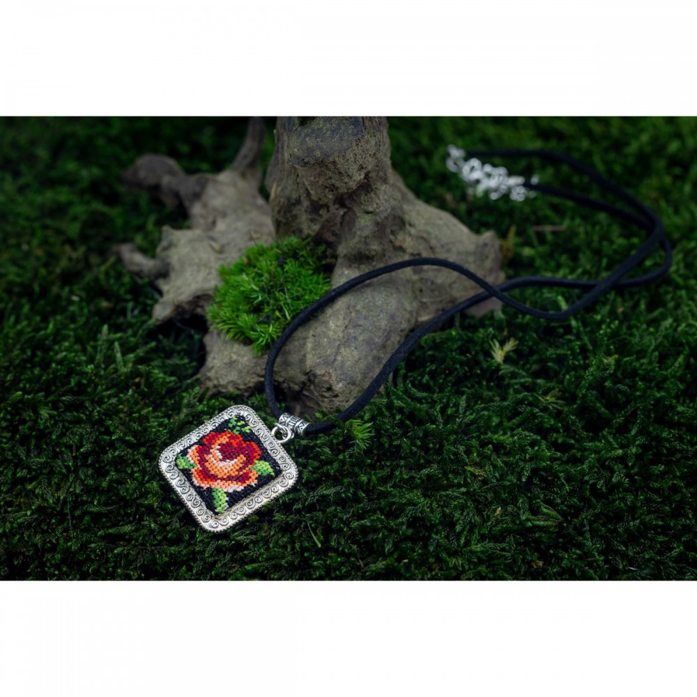Pandantiv patrat handmade, goblen trandafir norocos