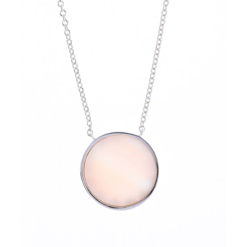 Colier 2 fatete din argint 925, rodiat, cu sidef sau “Mother of Pearl” este acea piatra sidefata ce se gaseste in interiorul scoicii si care este unica din punct de vedere al culorilor, deoarece sideful se coloreaza in mod natural in aceeasi nuanta a apei in care se regaseste, deasemenea despre piatra se spune ca aduce liniște și pace in casa, atrage bogatia si da longevitate, dar si o eleganta speciala celei ce il poarta, un aer rafinat si unic si se poate combina cu orice tinuta clasica, boho-chick sau smart-casual.