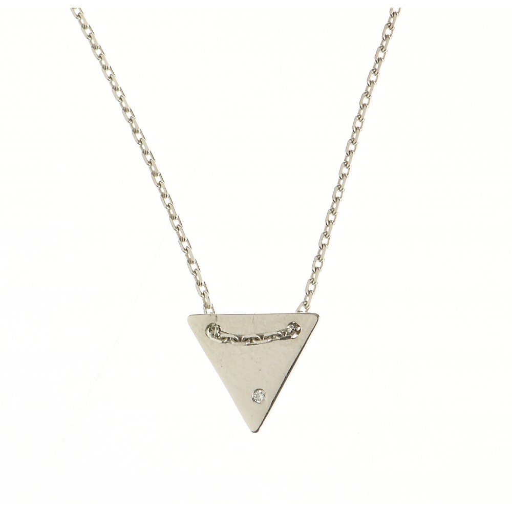 Colier model triunghi din argint 925, rodiat, cu zirconiu