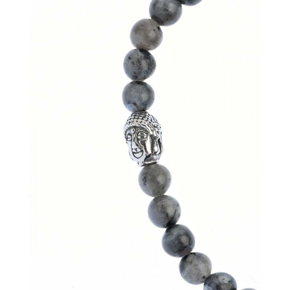 Labradoritul face parte din aceeasi clasa cu Piatra Lunii si poate fi intalnit in mai multe nuante, incolor, gri, alb, rosu, galben, roz, portocaliu, verde, brun. Are rol protector asupra purtatorului din toate punctele de vedere,aduce noroc, bucurie si bunatate in timp ce Buddha este un simbol de pace interioara si intelepciune .