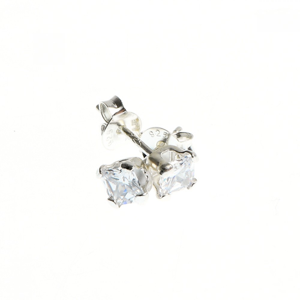 Cercei solitaire din argint 925, rodiati, cu zirconiu