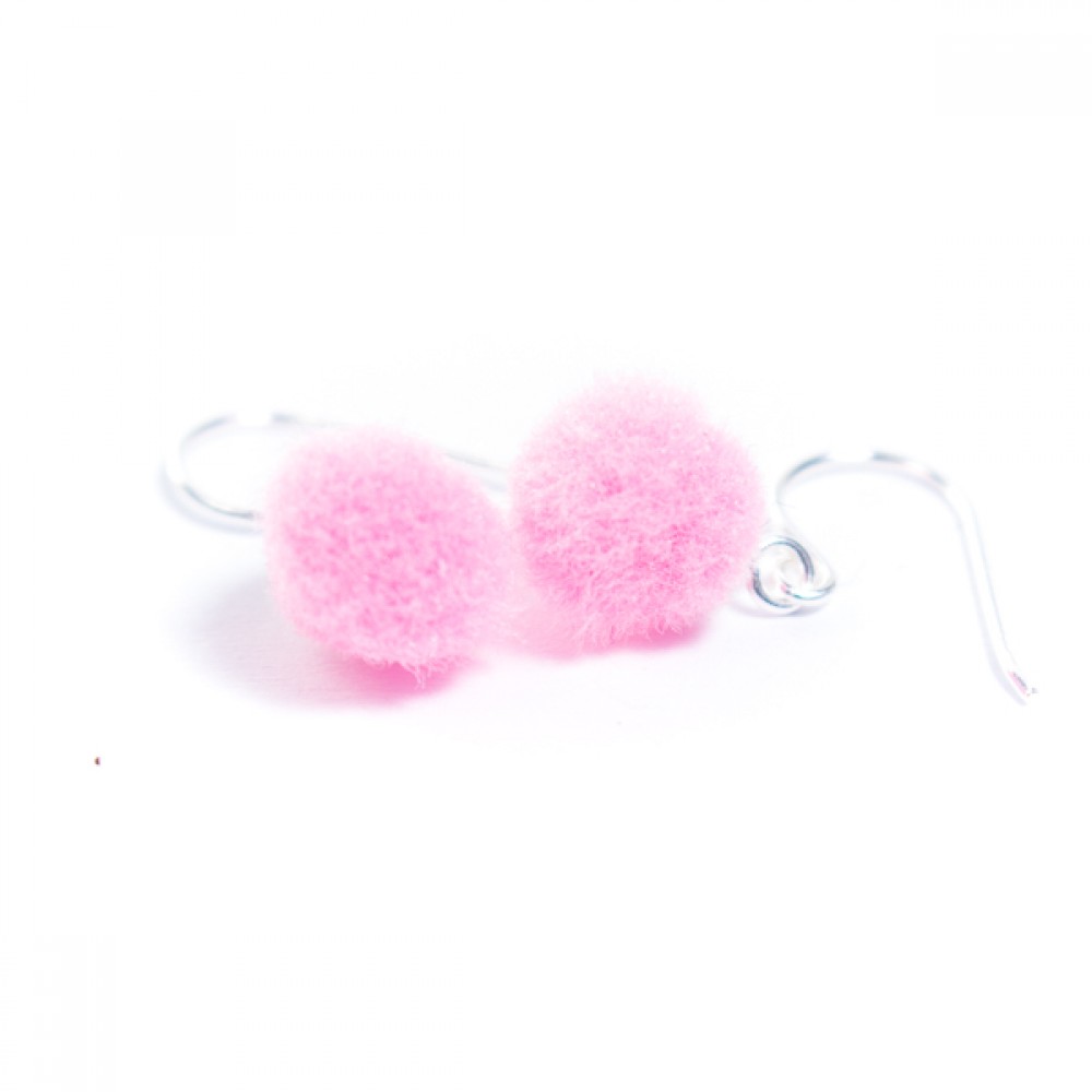 Cercei cu puf roz din bumbac, argint 925, placati cu rodiu
