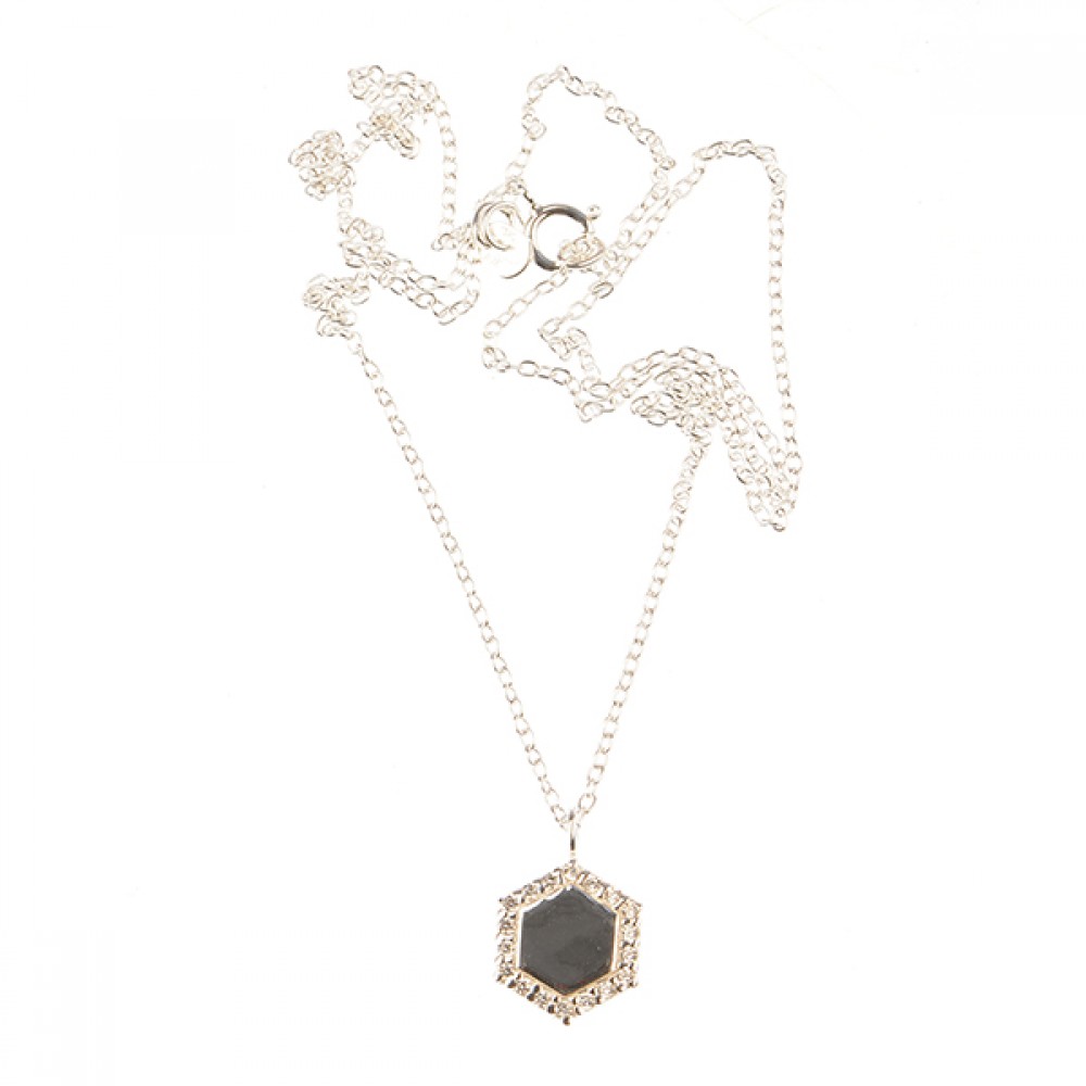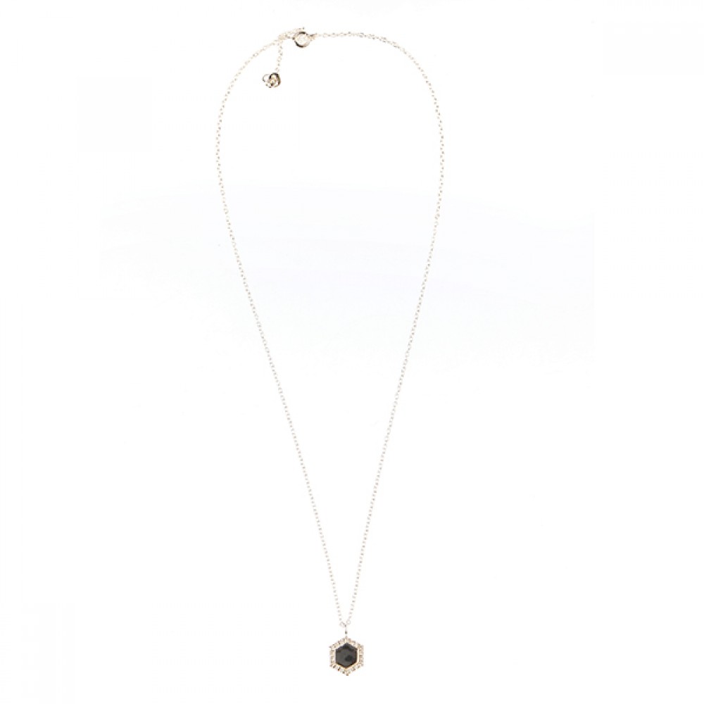 Colier model hexagon din argint 925, rodiat, cu zirconiu, un accesoriu fin si minimalist, este un accesoriu diferit prin design si forme ce se poate purta in orice moment al zilei, singur sau impreuna cu alte lanturi, si se potriveste cu success stilului clasic sau casual.