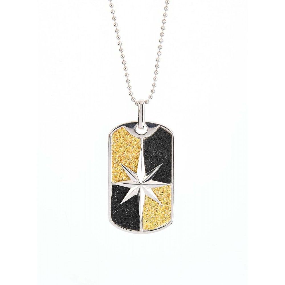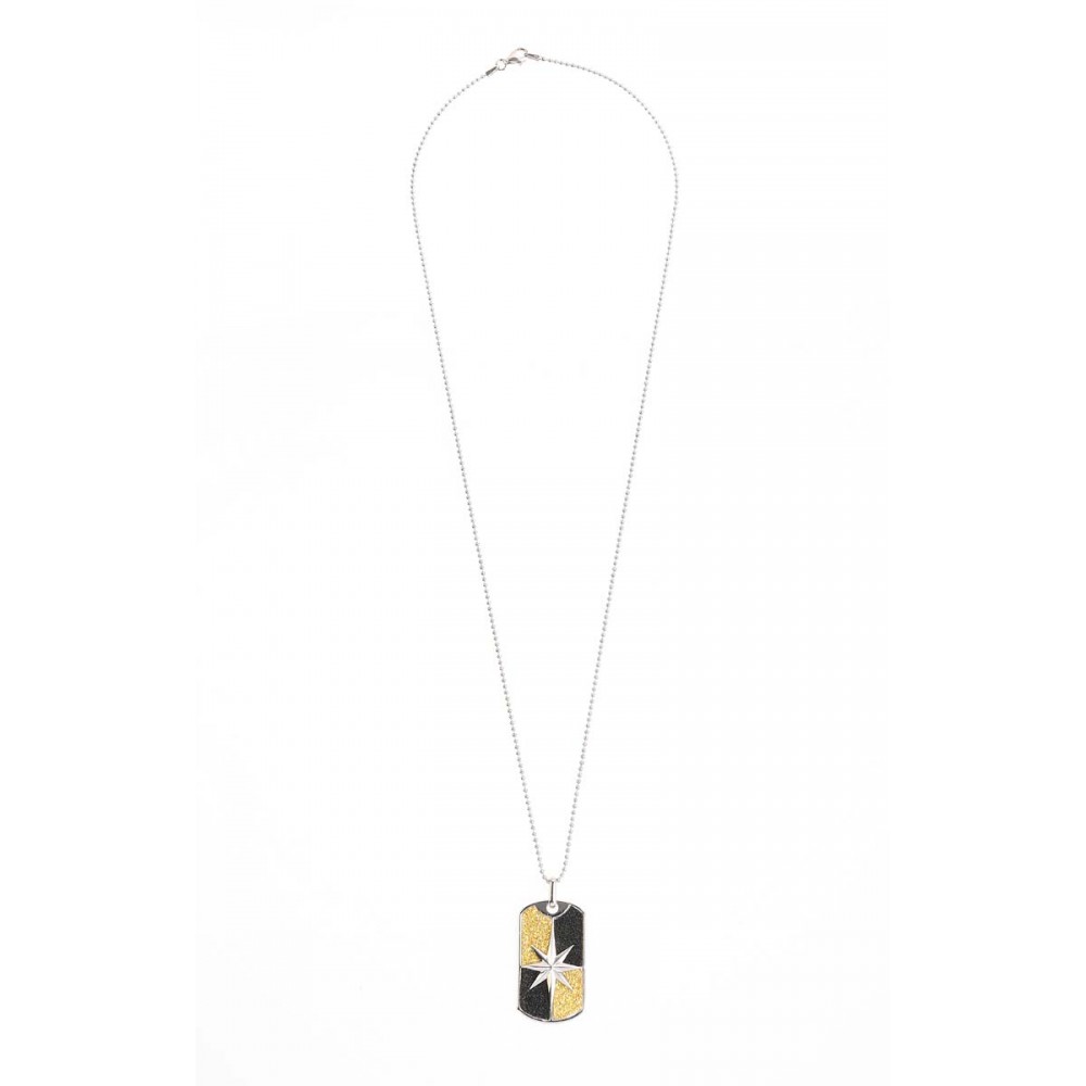 Colier duo navy din  argint 925, rodiat, cu zirconiu, cu steaua nordului si zirconii incrustate, un duo cromatic unicat de galben cu negru, se poate accesoriza cu succes oricarei tinute sport, casual sau navy si aduce un aer proaspat, masculin si unic celui ce il poarta.