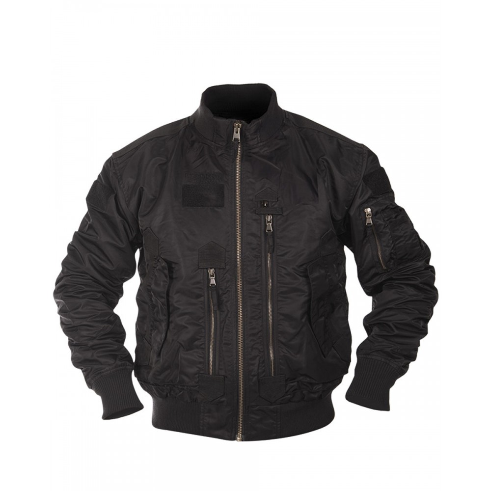 Geaca tip flyer din material robust din nailon, fermoar frontal YKK puternic, 2 buzunare laterale cu închidere cu cârlig și buclă.