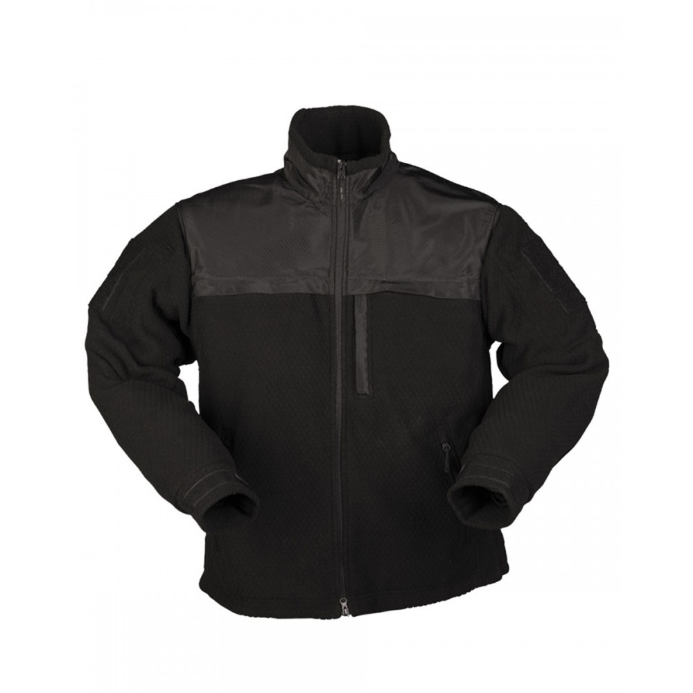 Jachetă din lână foarte caldă, groasă, cu model hexagonal, fermoar cu față în 2 sensuri, 2 buzunare cu fermoar în față, buzunar slip cu fermoar, 2 buzunare piept ascunse cu fermoar, suport pentru documente detașabil în buzunarul de la piept. Buzunar superior pentru braț cu fermoar, închidere cu cârlig și buclă pe buzunarele superioare ale brațului pentru fixarea plasturilor. Mansete reglabile cu inchidere cu carlig si bucla, întindere reglabilă pe partea laterală a jachetei cu fermoar și închidere cu cârlig și buclă, marginea sub zona brațului și a umerilor. Buzunar spate ascuns cu fermoar, buzunar din spate cu bandă de închidere cu cârlig și buclă pentru fixarea plasturilor. Compozitie: Partea superioară: 100% poliester (fleece) Căptușeală: 100% poliester Bordură: 100% poliester