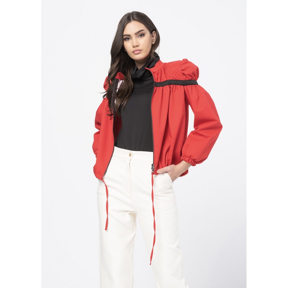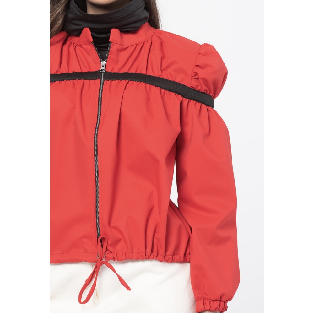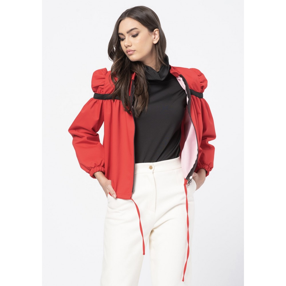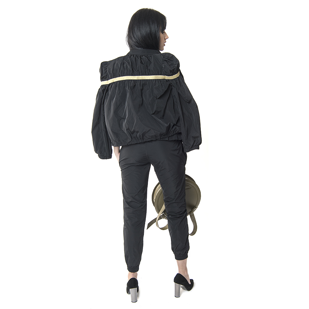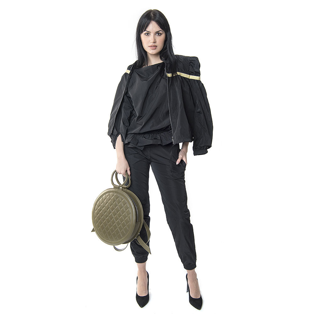 Detalii: inchiderea se face cu fermoar detasabil, are un croi lejer, aplicatii benzi elastice ornamentale, siret in talie si guler cazacesc