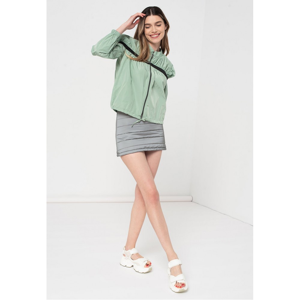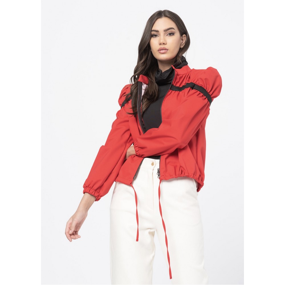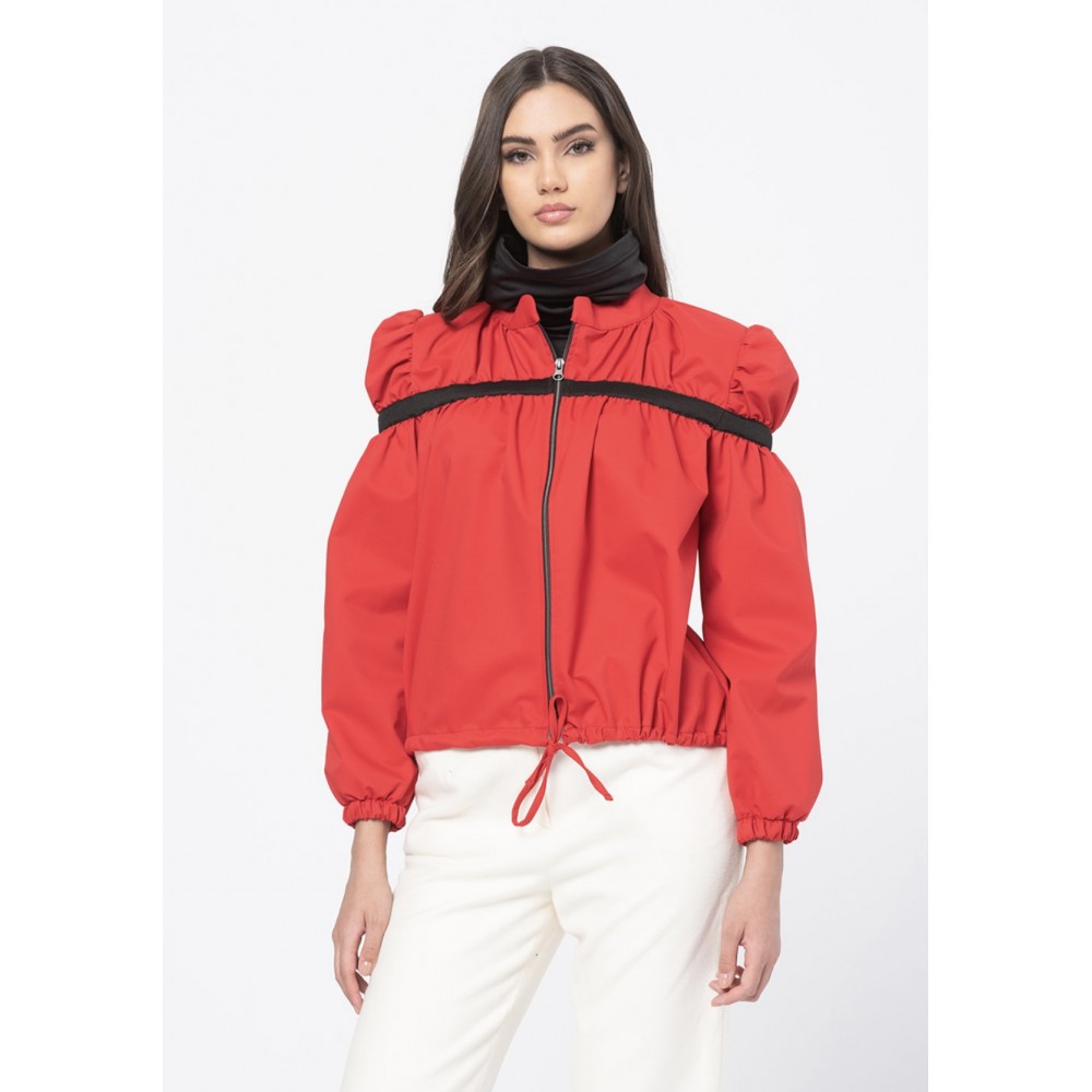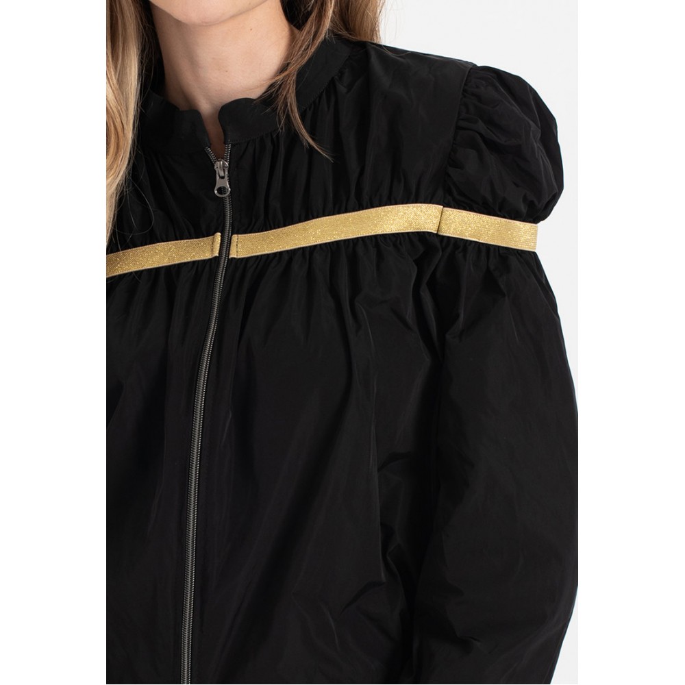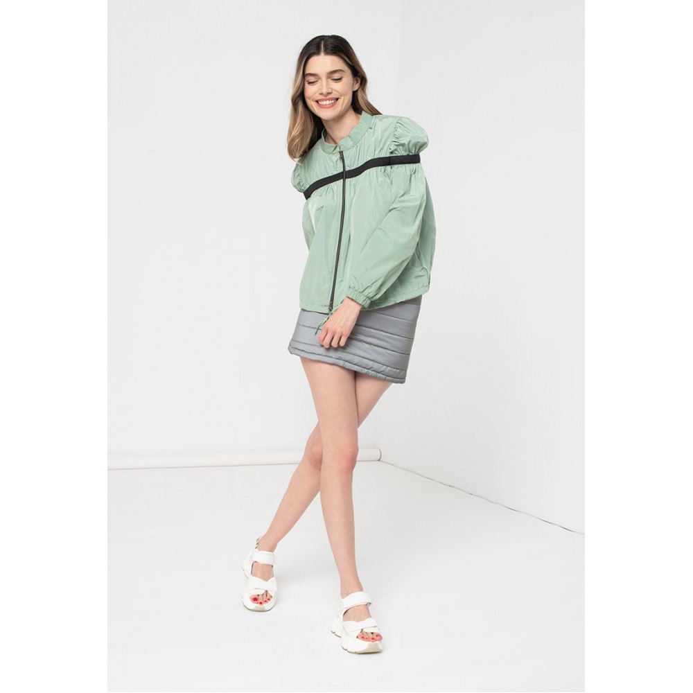 Detalii: inchiderea se face cu fermoar detasabil, are un croi lejer, aplicatii benzi elastice ornamentale, siret in talie si guler cazacesc
