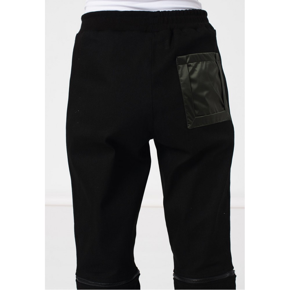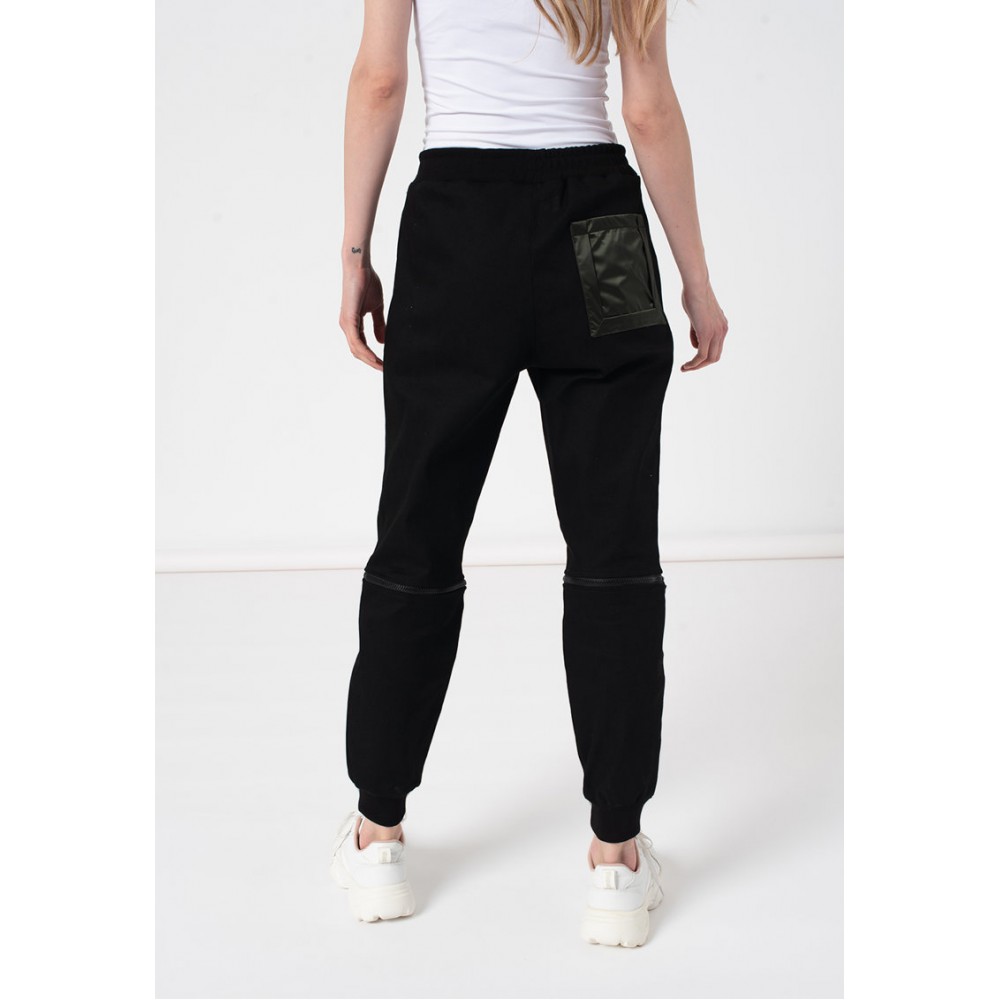 Detalii: 2 buzunare cu fermoar pe partea din fata, 1 pe partea din spate, talie elastica, croiala relaxed fit.