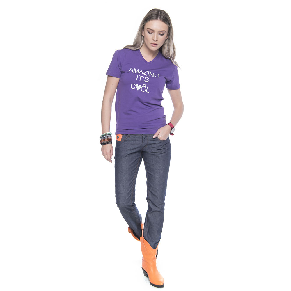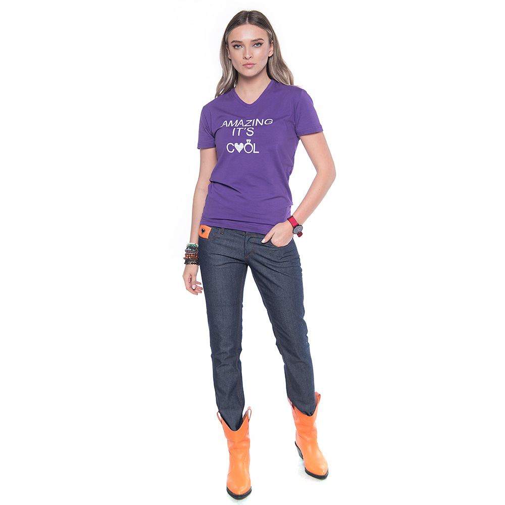 Pantaloni Devil din blug cu talie joasa, buzunare cu inchidere prin fermoar, logo inimioara aplicat