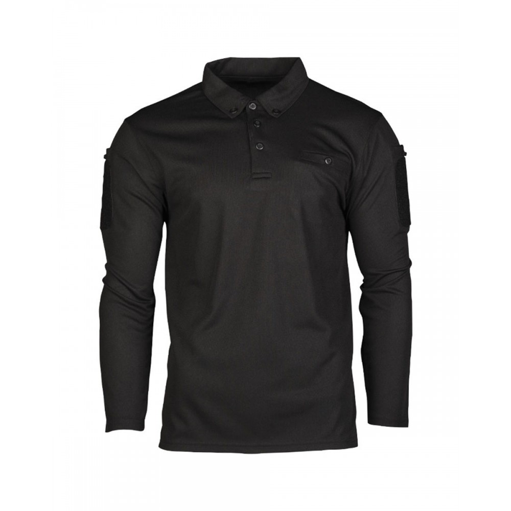 Bluza tip polo cu mânecă lungă, îmbrăcăminte atletică cu uscare rapidă, material respirabil. Guler polo cu buton orientat, poate fi fixat pe cămașă cu buton, închidere cu cârlig și buclă pe brațul superior pentru fixarea plasturilor. Buzunare mici pentru braț, cu buton și suport pentru stilou, buzunar la piept cu nasture, fante laterale scurte pe tiv. Compizitie: 100% poliester