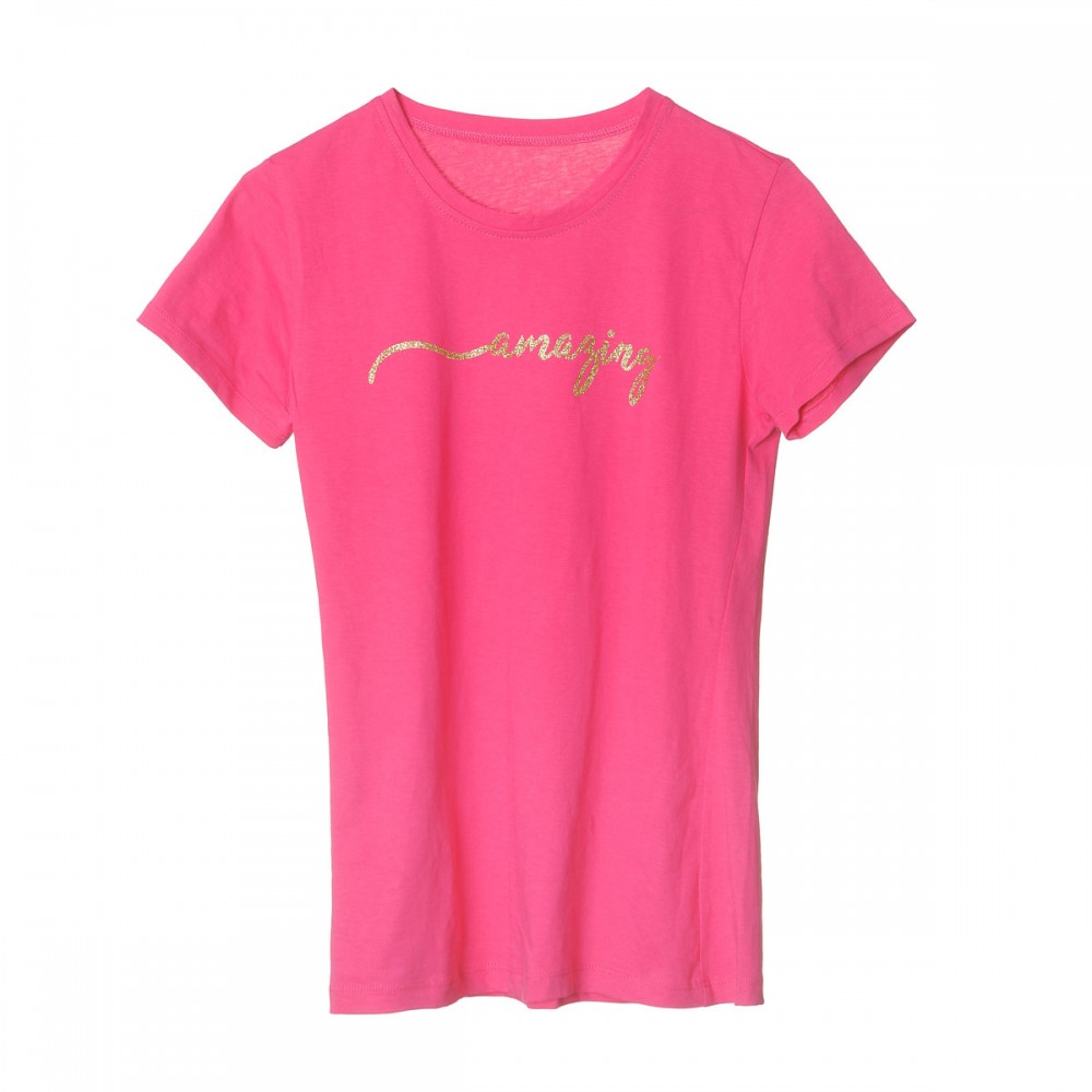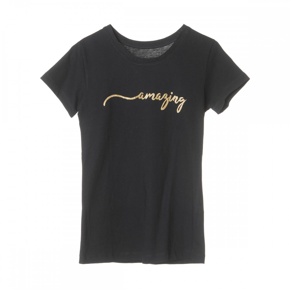 Tricou clasic, guler rotund sau in V, personalizat cu glitter auriu si argintiu
